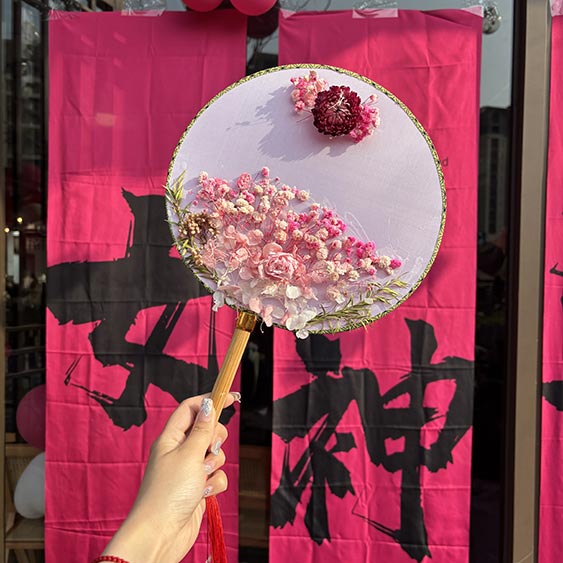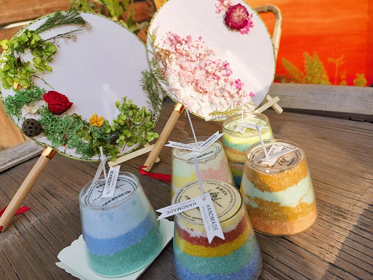 一把团扇,几分古韵。活动现场,一把把摇曳的古风团扇在女神们的巧手中“活”了起来。女神们的DIY之魂逐渐燃起,手捧花、沙画香熏蜡烛从零散的组件,慢慢成为被赋予灵魂的作品,完成了从0到1的蜕变。大家在制作的过程中不忘交流制作手法,分享设计思路,活动现场不时传来阵阵笑声,洋溢着欢乐和谐的美好氛围。
