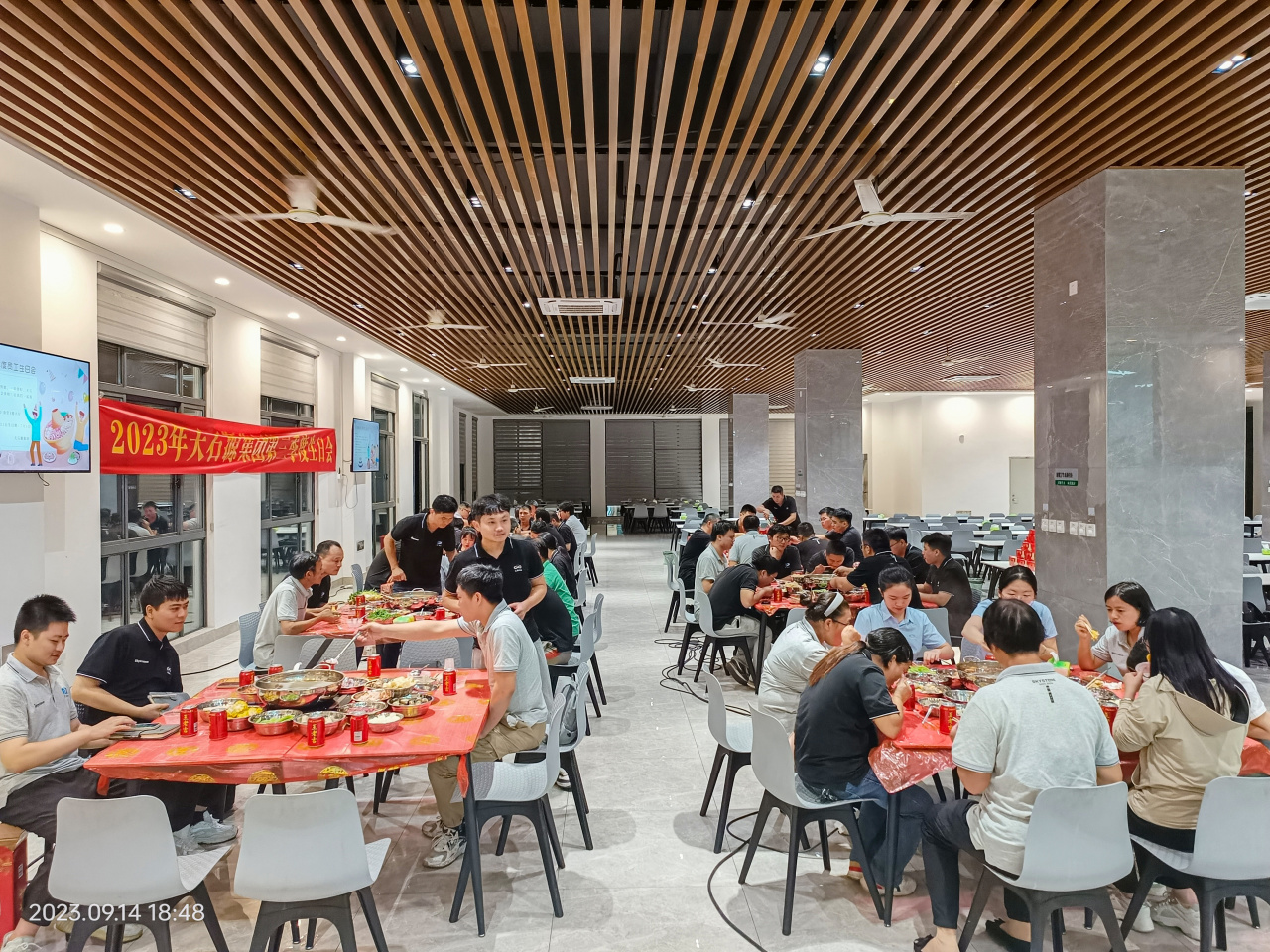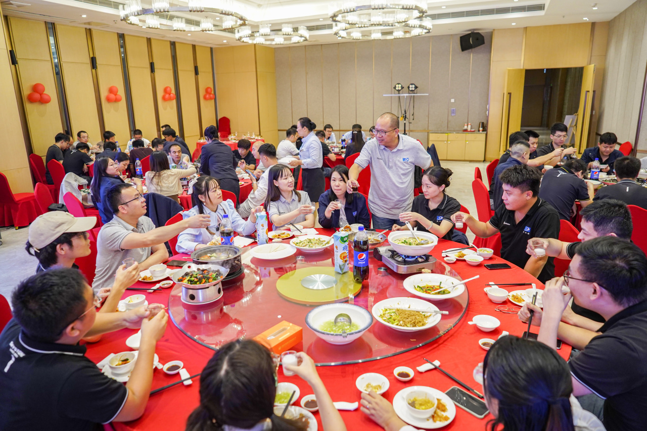 秋风吹来小欢喜,一岁总有一岁期。莆田会场的生日会同样温情满满。颜色分明的鸳鸯锅,琳琅满目的食材,只是看看就令人直吞口水。红油流淌的涮肉、饱满Q弹的丸子、入口即化的豆腐、鲜嫩可口的虾仁......每一口都能吃出幸福的感觉,吃出公司对天石源家人们浓厚的关爱。此外还为家人们送上了象征长寿的生日面条,大家举杯同庆,表达着自己的喜悦之情。