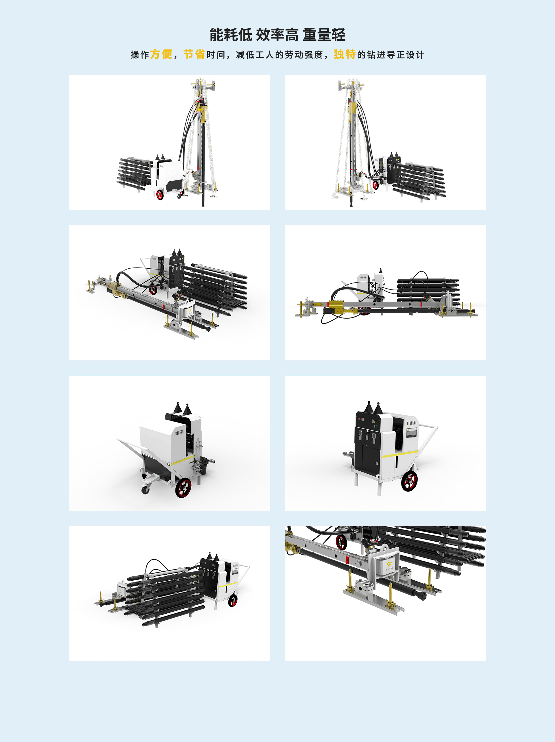 机器吊装方便,特别适合在狭窄的空间角落快速定位和钻孔。设备配件布局合理,设备维护简单,成本低。